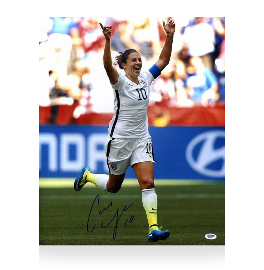 Deze 2015 Verenigde Staten foto is persoonlijk gesigneerd door Carli Lloyd. Het item wordt geleverd met een officieel ICONS echtheidscertificaat.