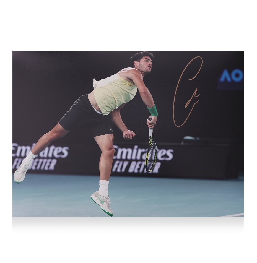 Deze 2024 foto is persoonlijk gesigneerd door Carlos Alcaraz. Het item wordt geleverd met een officieel ICONS echtheidscertificaat.