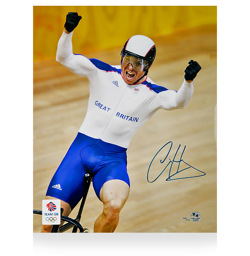Deze Team GB foto is persoonlijk gesigneerd door Chris Hoy. Het item wordt geleverd met een officieel ICONS echtheidscertificaat.