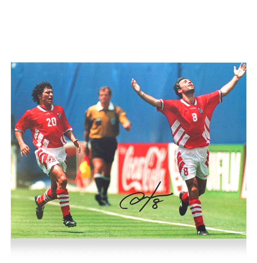 Deze 1994 Bulgarije foto is persoonlijk gesigneerd door Hristo Stoichkov. Het item wordt geleverd met een officieel ICONS echtheidscertificaat.