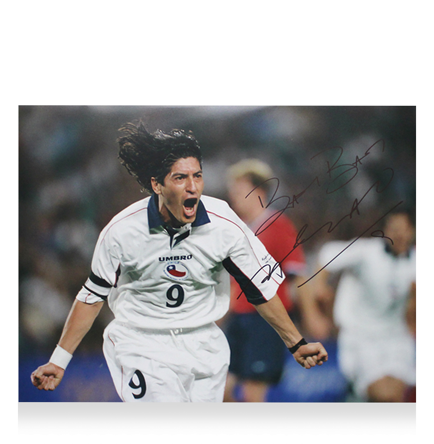 Deze 2000 Chili foto is persoonlijk gesigneerd door Ivan Zamorano. Het item wordt geleverd met een officieel ICONS echtheidscertificaat.