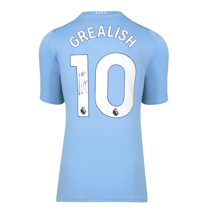 Dit 2023-24 Manchester City shirt is persoonlijk gesigneerd door Jack Grealish. Het item wordt geleverd met een officieel ICONS echtheidscertificaat.