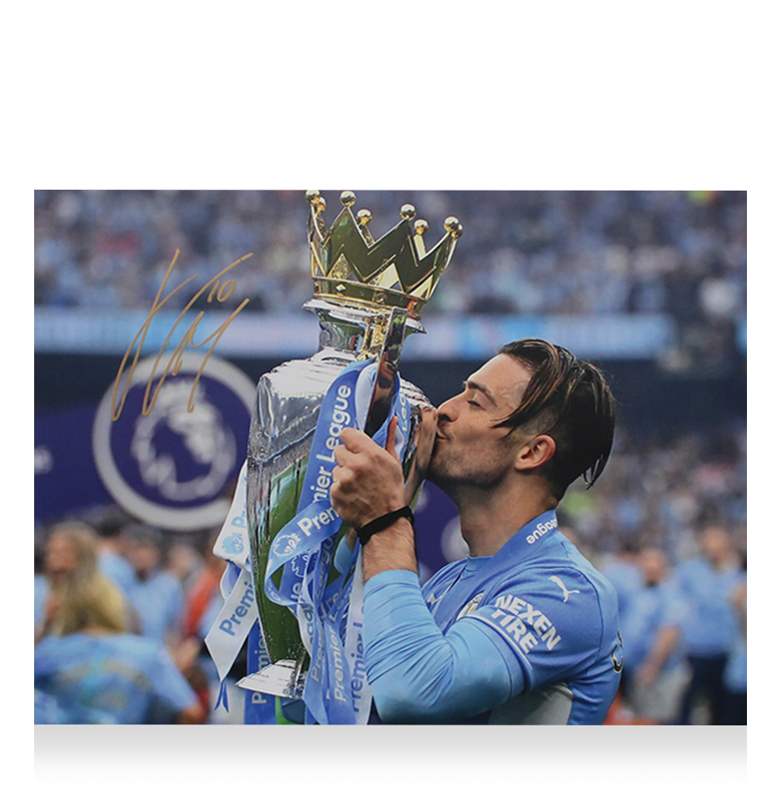 Deze Manchester City foto is persoonlijk gesigneerd door Jack Grealish. Het item wordt geleverd met een officieel ICONS echtheidscertificaat.