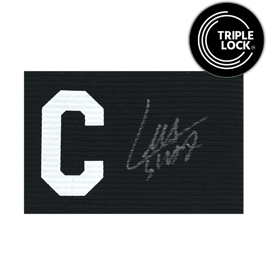 Dit aanvoerdersband is persoonlijk gesigneerd door Luis Suarez. Het item wordt geleverd met een officieel ICONS echtheidscertificaat.