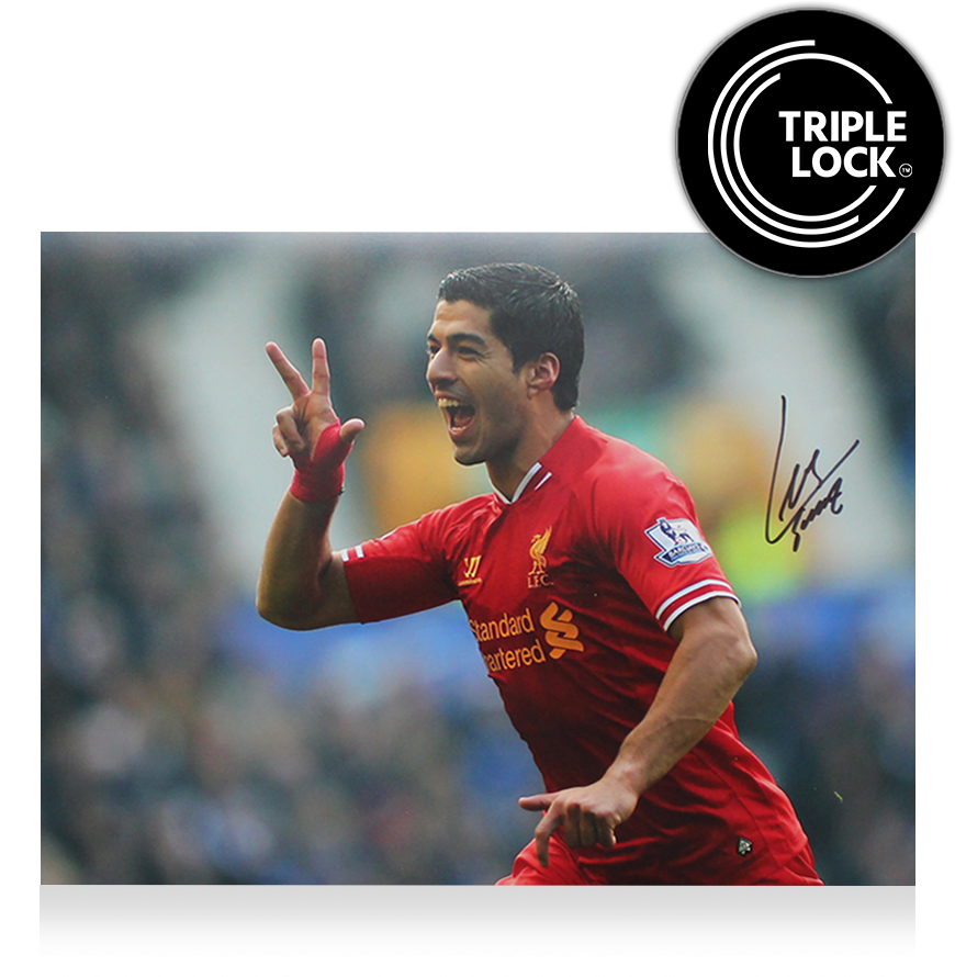 Deze Liverpool FC foto is persoonlijk gesigneerd door Luis Suarez. Het item wordt geleverd met een officieel ICONS echtheidscertificaat.