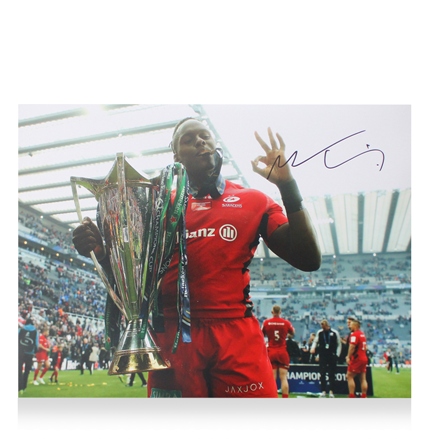 Deze 2019 Saracens foto is persoonlijk gesigneerd door Maro Itoje. Het item wordt geleverd met een officieel ICONS echtheidscertificaat.
