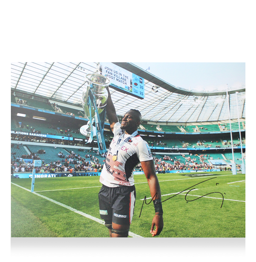 Deze 2023 Saracens foto is persoonlijk gesigneerd door Maro Itoje. Het item wordt geleverd met een officieel ICONS echtheidscertificaat.