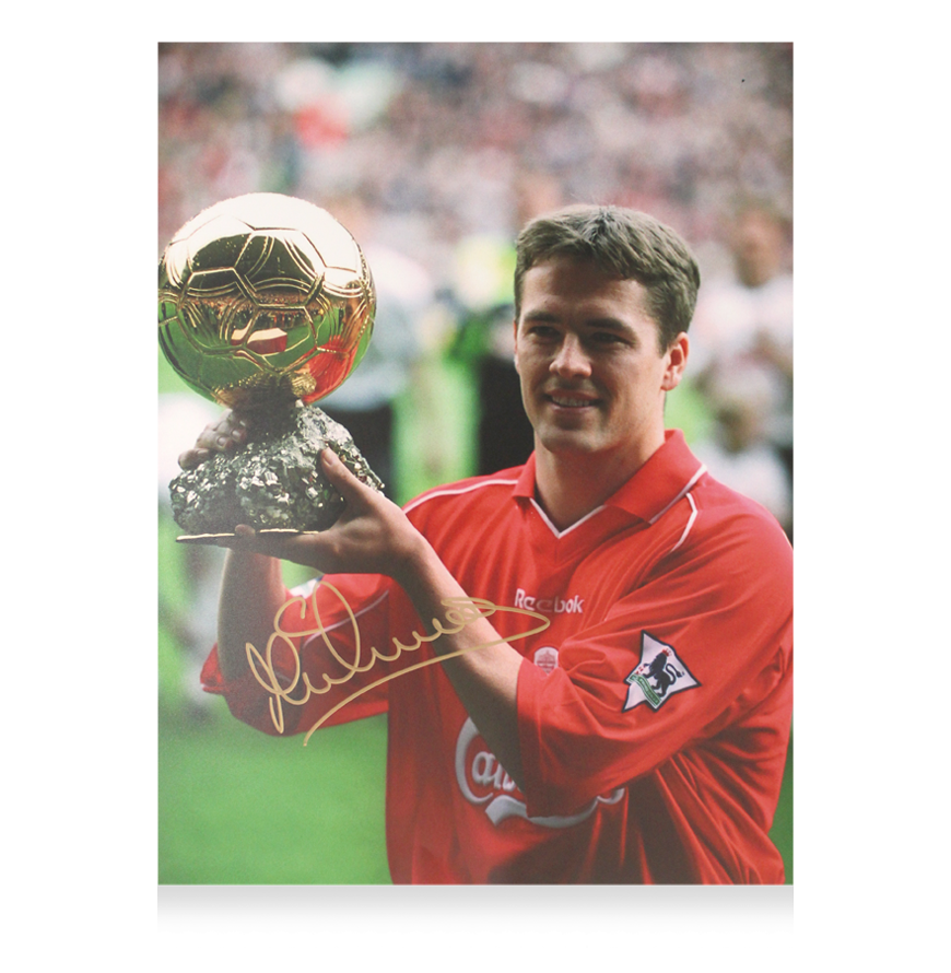 Deze 2001 Liverpool FC foto is persoonlijk gesigneerd door Michael Owen. Het item wordt geleverd met een officieel ICONS echtheidscertificaat.