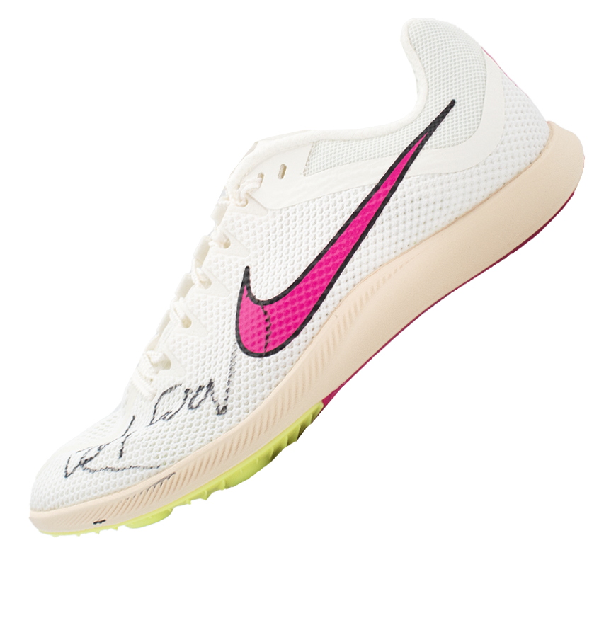 Deze hardloopschoen is persoonlijk gesigneerd door Mo Farah. Het item wordt geleverd met een officieel ICONS echtheidscertificaat.