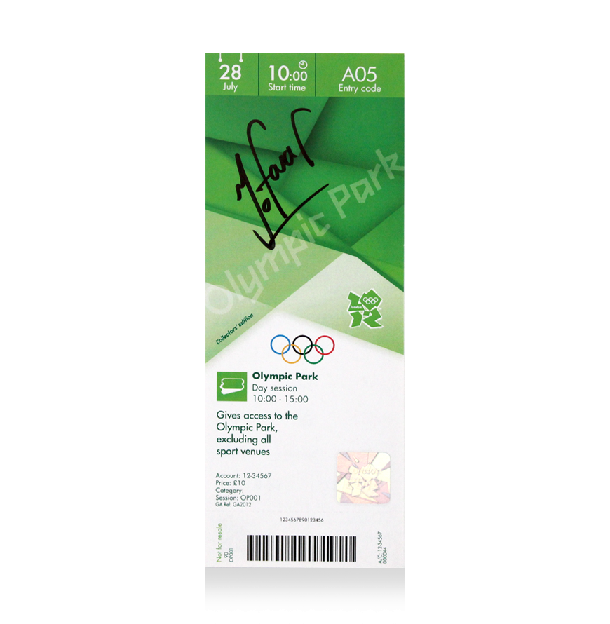 Dit 2012 ticket is persoonlijk gesigneerd door Mo Farah. Het item wordt geleverd met een officieel ICONS echtheidscertificaat.