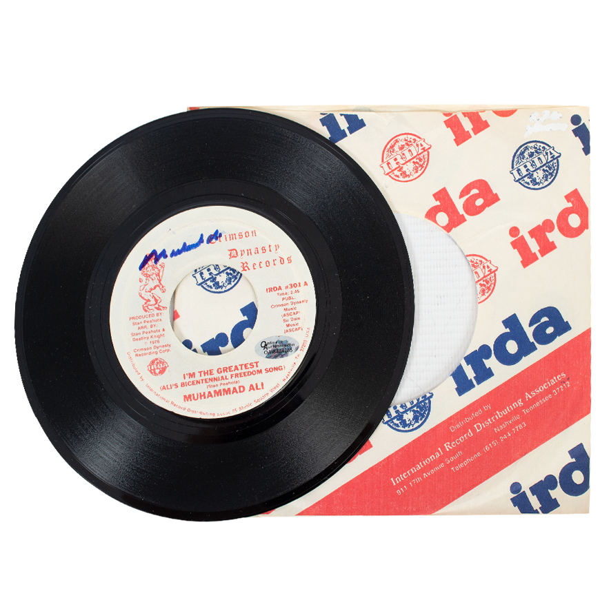 Deze vinylplaat is persoonlijk gesigneerd door Muhammad Ali. Het item wordt geleverd met een officieel ICONS echtheidscertificaat.