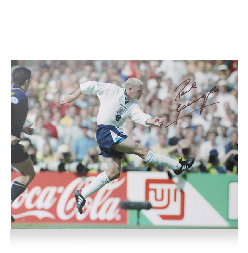 Deze Engeland foto is persoonlijk gesigneerd door Paul Gascoigne. Het item wordt geleverd met een officieel ICONS echtheidscertificaat.