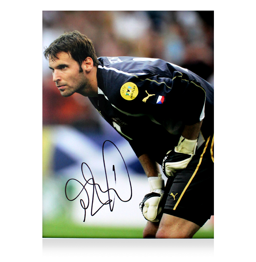 Deze 2004 Tsjechië foto is persoonlijk gesigneerd door Petr Cech. Het item wordt geleverd met een officieel ICONS echtheidscertificaat.