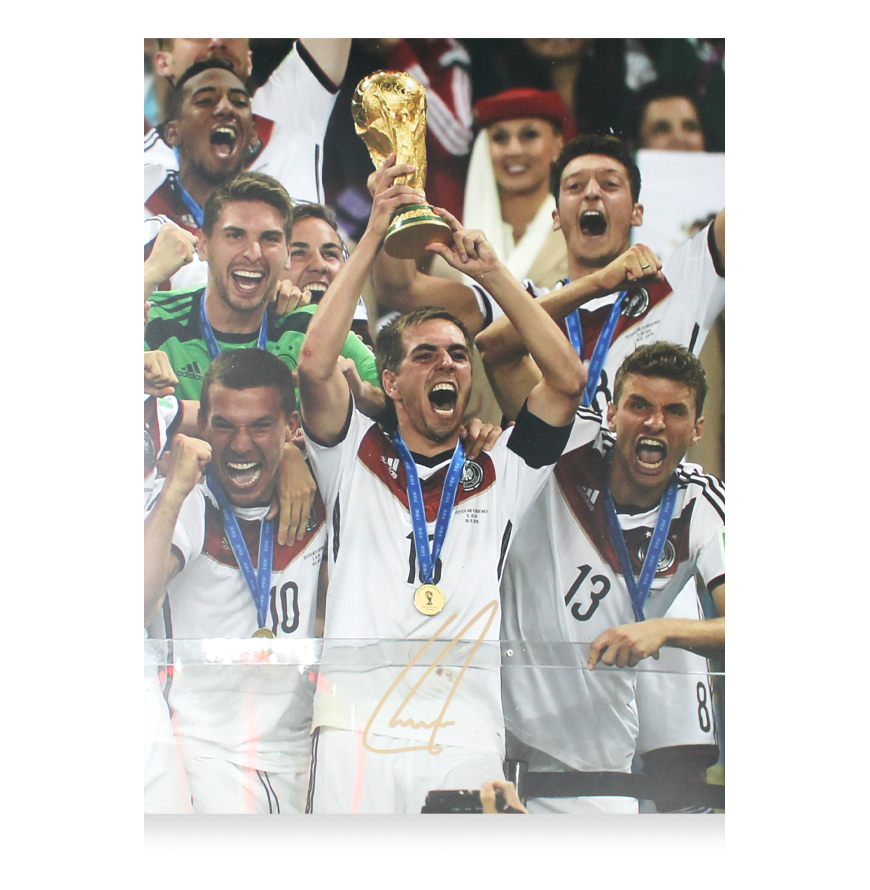 Deze Duitsland foto is persoonlijk gesigneerd door Philip Lahm. Het item wordt geleverd met een officieel ICONS echtheidscertificaat.