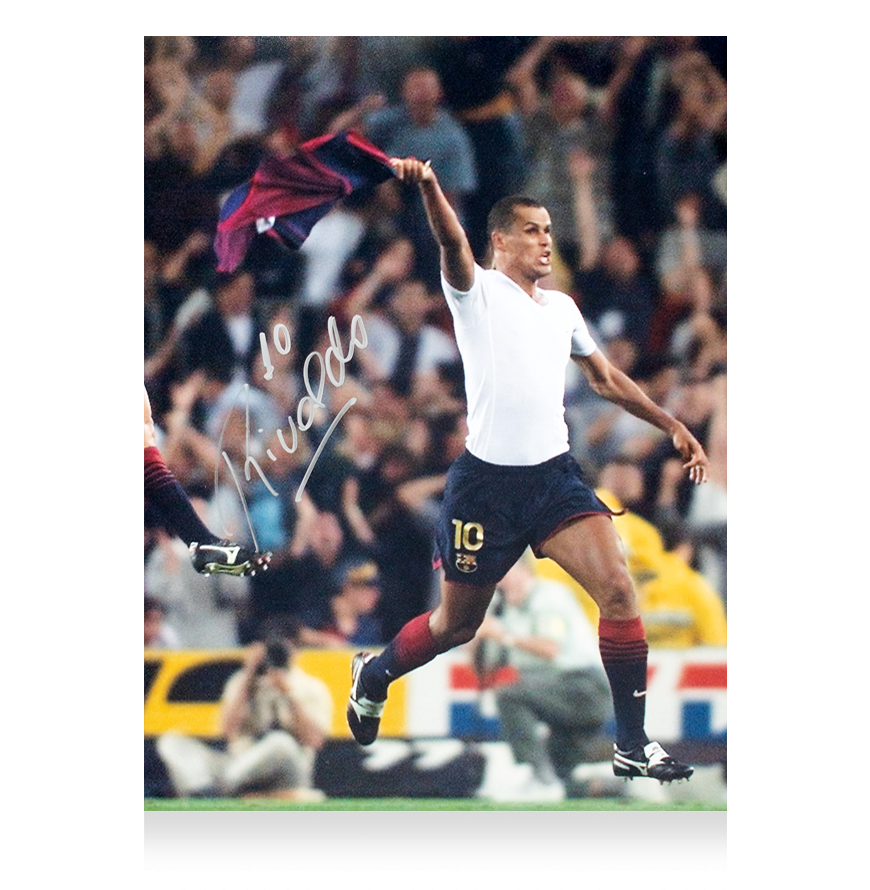 Deze FC Barcelona foto is persoonlijk gesigneerd door Rivaldo. Het item wordt geleverd met een officieel ICONS echtheidscertificaat.