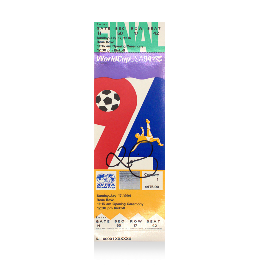 Dit 1994 Brazilië ticket is persoonlijk gesigneerd door Romario. Het item wordt geleverd met een officieel ICONS echtheidscertificaat.