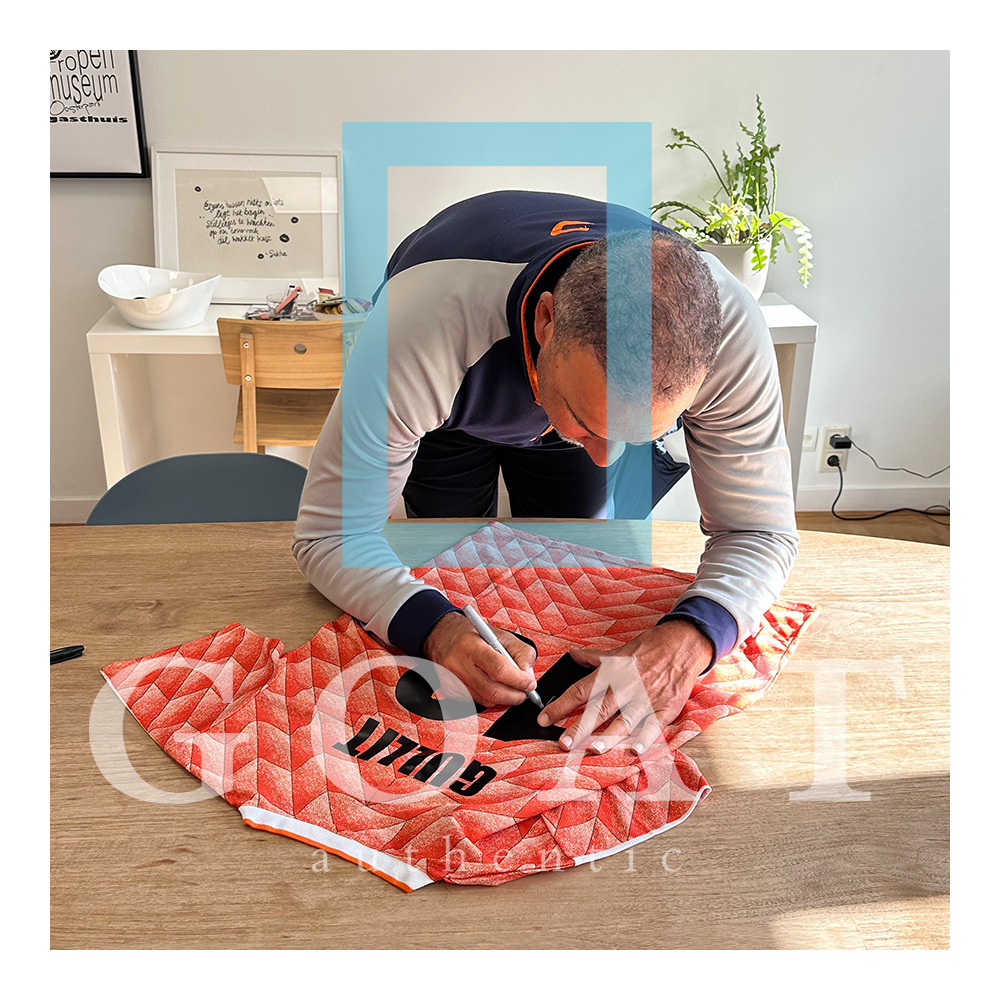 Dit Nederlands elftal retro shirt is persoonlijk gesigneerd door Ruud Gullit. Het item beschikt over een unieke GOAT hologram als garantie van de authenticiteit van de handtekening.