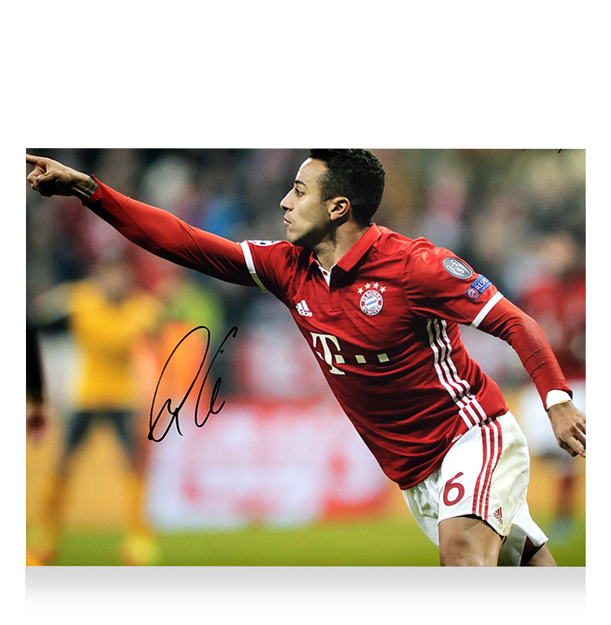 Deze Bayern München foto is persoonlijk gesigneerd door Thiago Alcantara. Het item wordt geleverd met een officieel ICONS echtheidscertificaat.