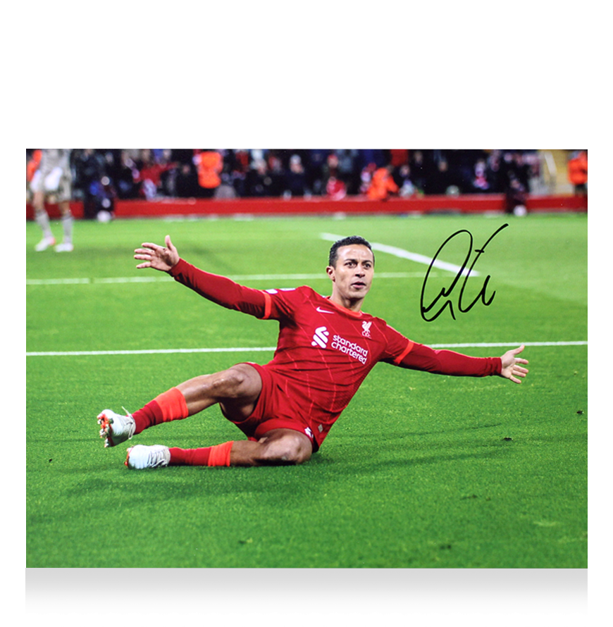 Deze Liverpool FC foto is persoonlijk gesigneerd door Thiago Alcantara. Het item wordt geleverd met een officieel ICONS echtheidscertificaat.