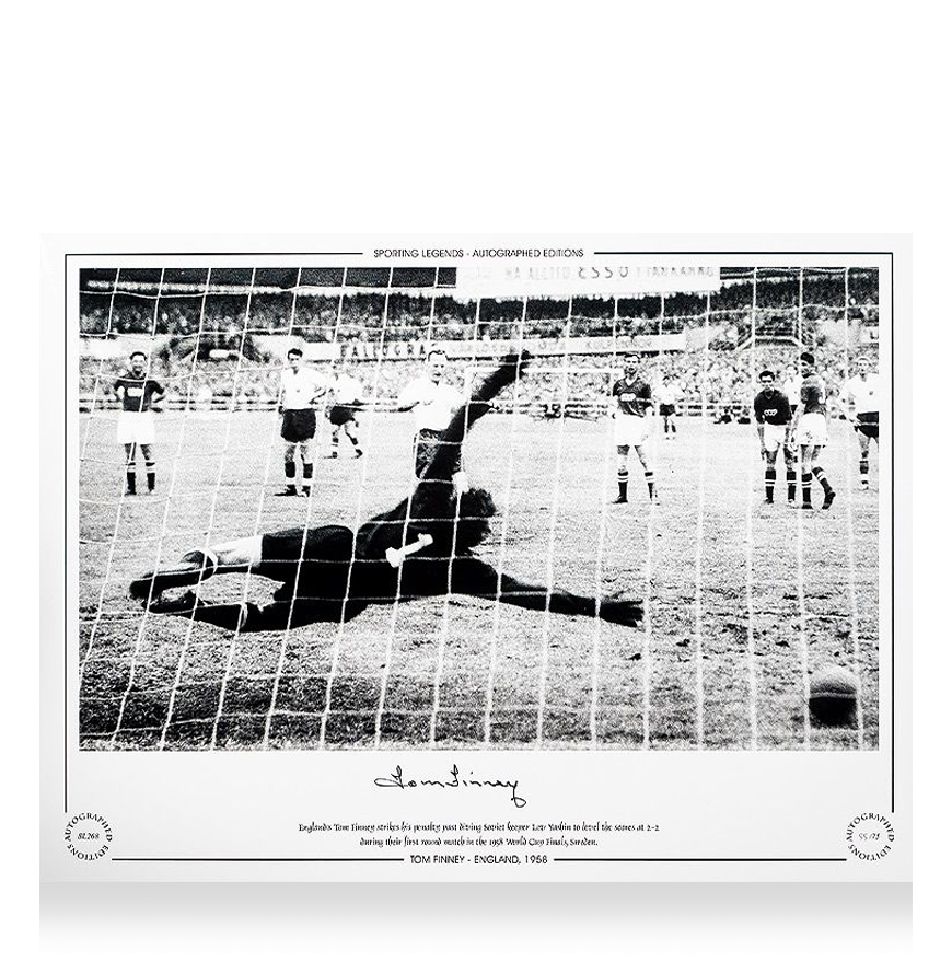 Deze Engeland foto is persoonlijk gesigneerd door Tom Finney. Het item wordt geleverd met een officieel ICONS echtheidscertificaat.