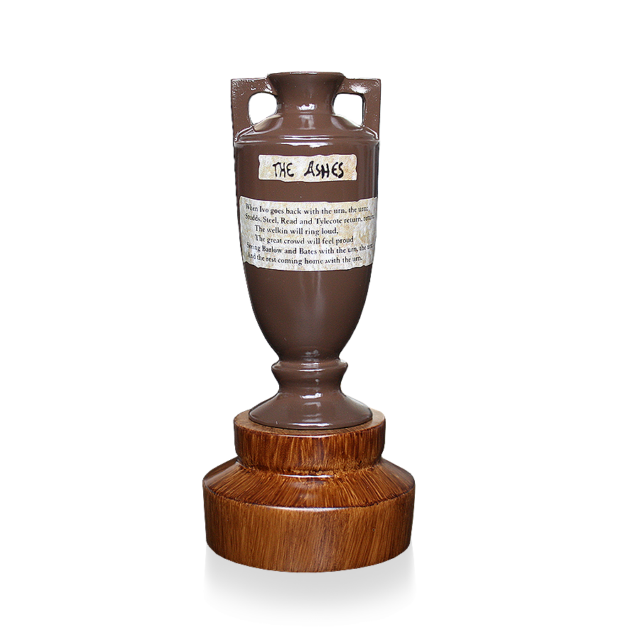 Een van de meest prestigieuze prijzen in de sportwereld: de Ashes-urn is een kleine terracotta trofee. Deze replica is 11 centimeter hoog.