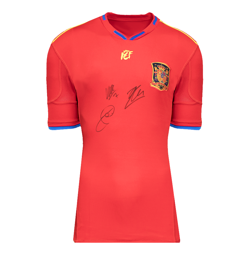 Xabi Alonso, Xavi en David Villa gesigneerd Spanje shirt 2010